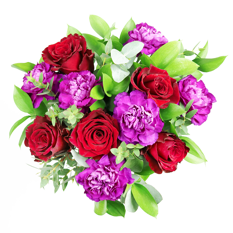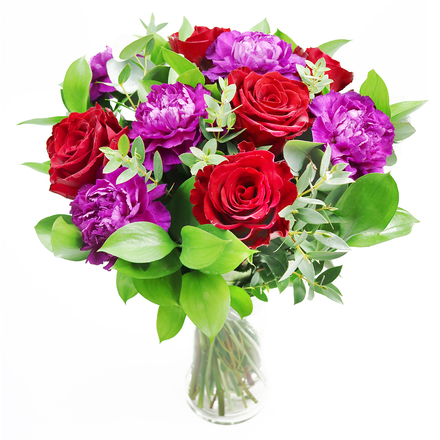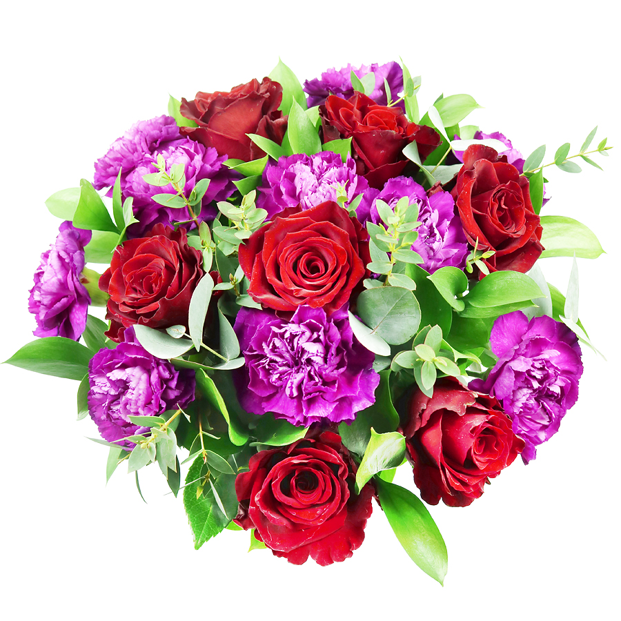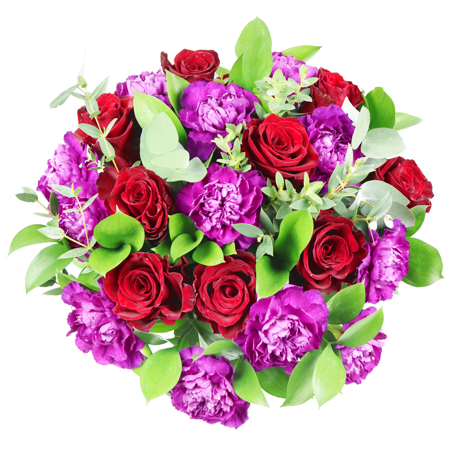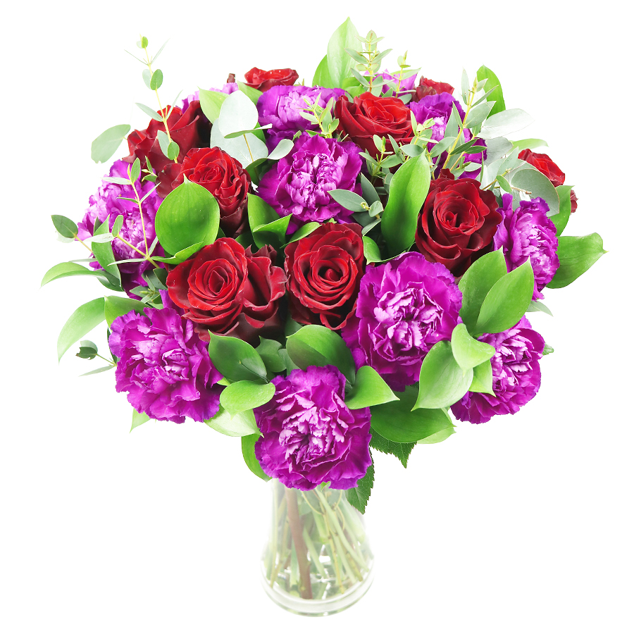 An exquisite combination of red roses, cerise carnations, ruscus and eucalyptus that will for sure surprise your soulmate. When love is in the air, go for the most romantic gesture to make them feel even more loved!