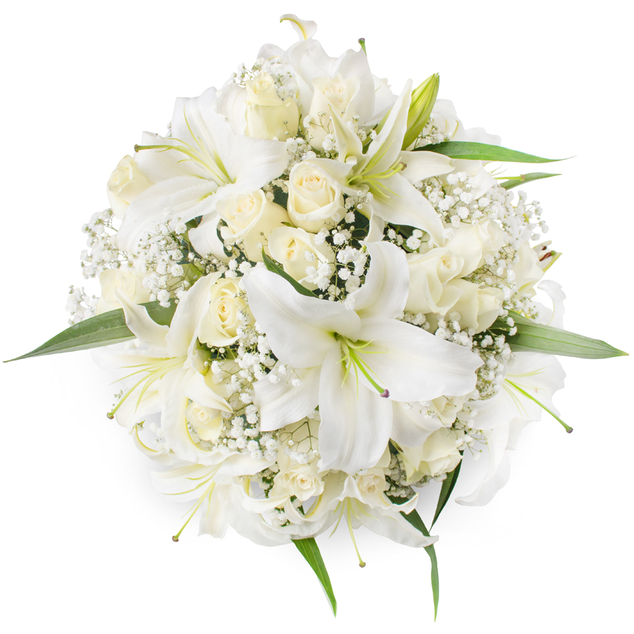 Immerse yourself in the timeless beauty of our Pure Serenity Bouquet. This exquisite arrangement showcases white roses, liliums, and gypsophila, meticulously arranged to create a harmonious and elegant display.