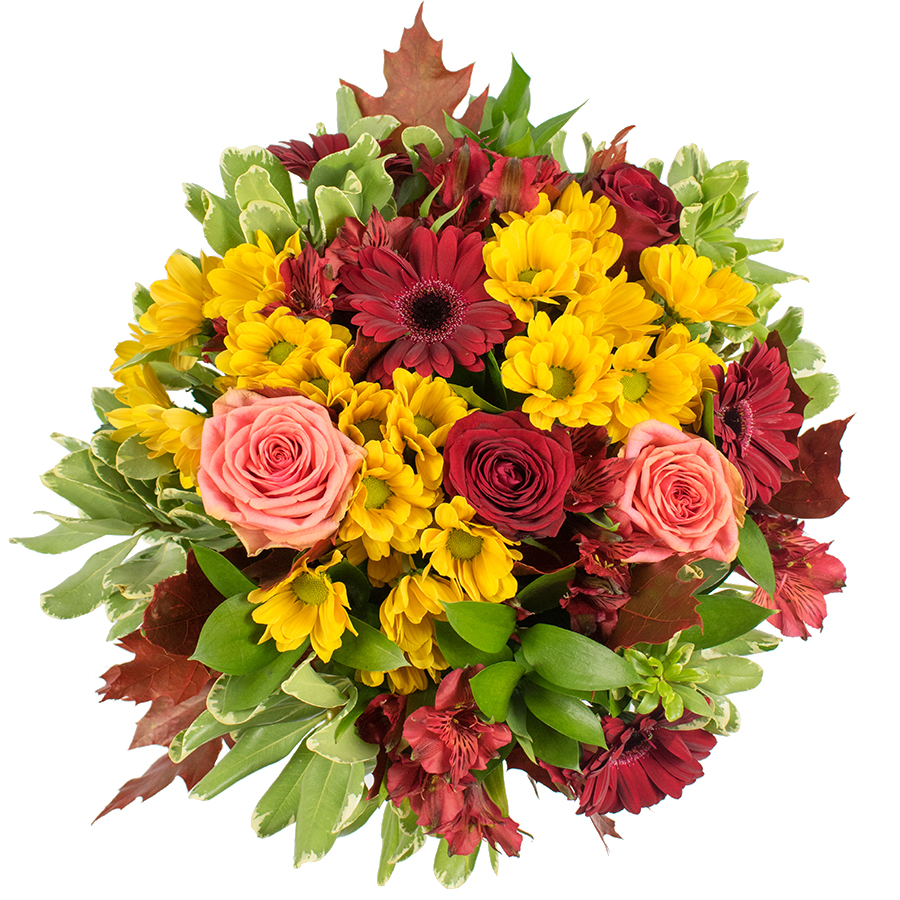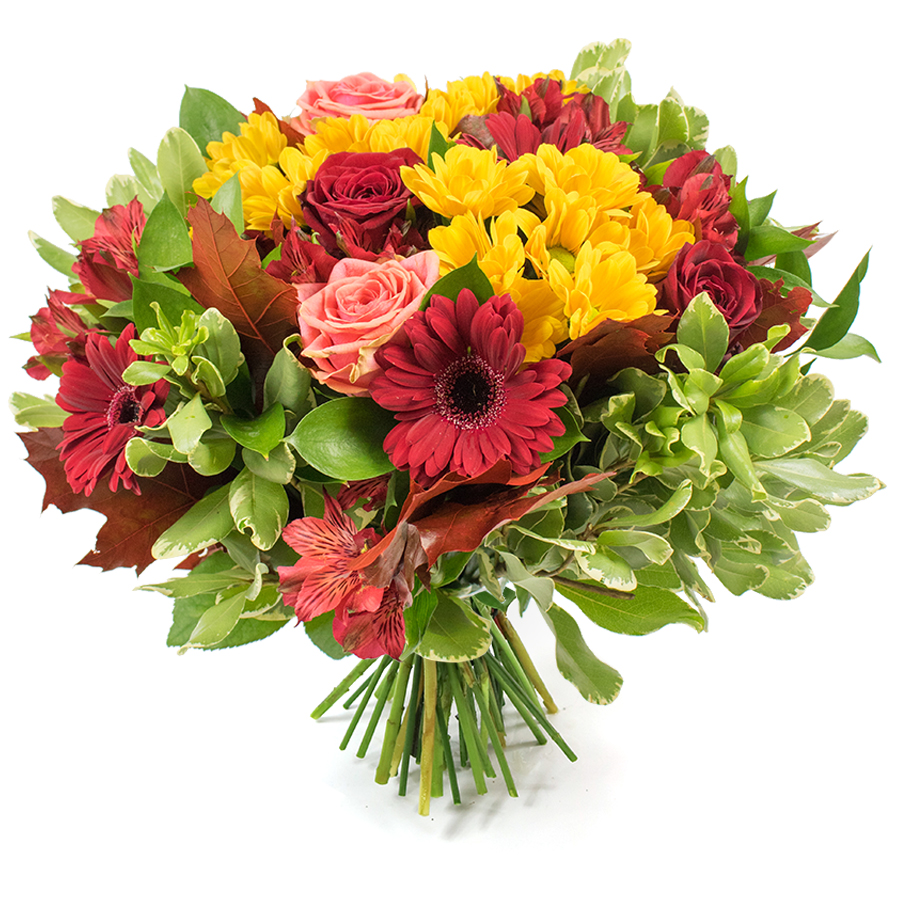As the days are getting colder, bring a burst of colourful blooms inside and spread some warmth and cheer! This heartwarming bouquet is created from lavish roses, fresh gerberas and alstroemeria.