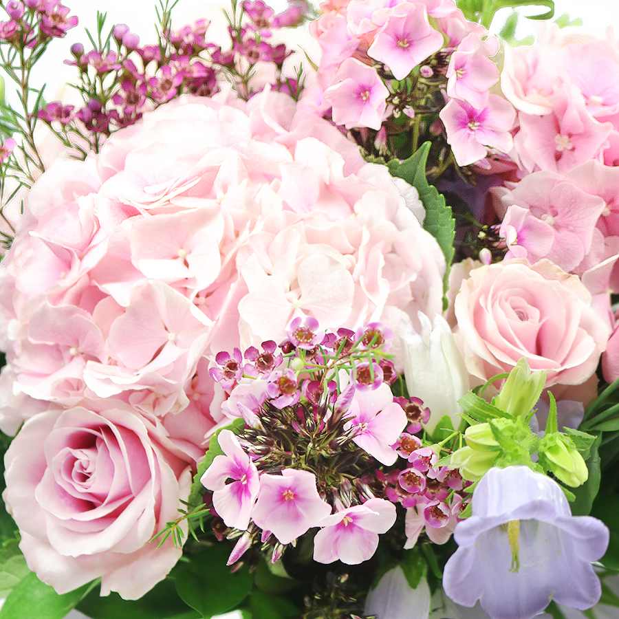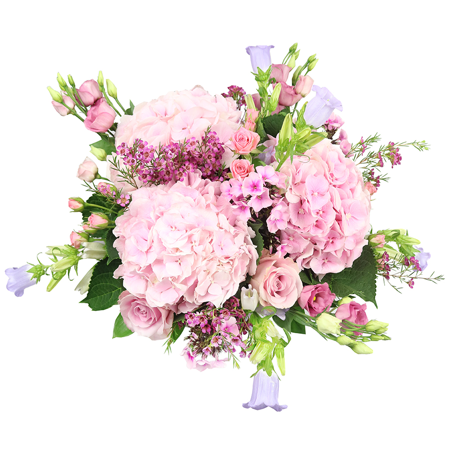 Gentle and classy bouquet perfect for any occasion! This arrangement will charm everyone with its pink roses, pink hydrangeas, pink roses, and pink lisianthus.