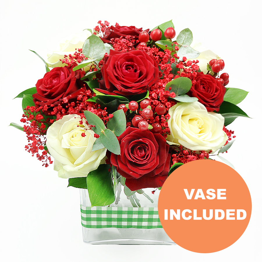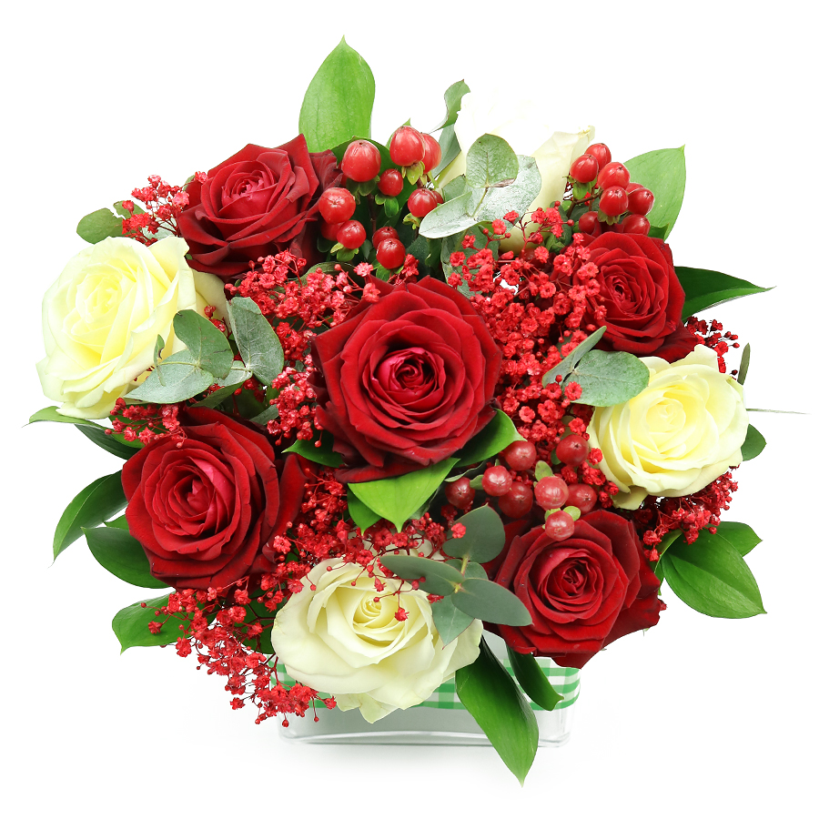 Express your affection with our graceful Valentine's rose bouquet. This elegant arrangement features a beautiful blend of red and white roses, perfectly designed to convey your heartfelt emotions.