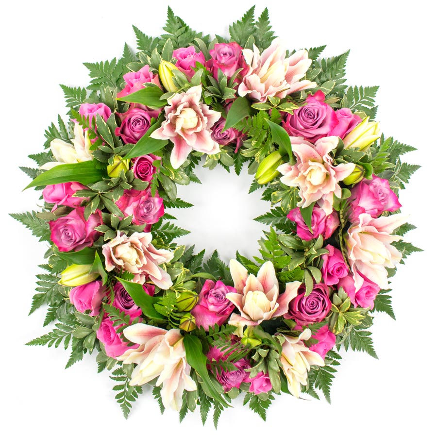 Honour the life of someone whose gentle heart and beautiful soul would never be forgotten. This lovely flower wreath made of roses and lilies is a beautiful gesture to offer your condolences to a mourning family and pay your respect.