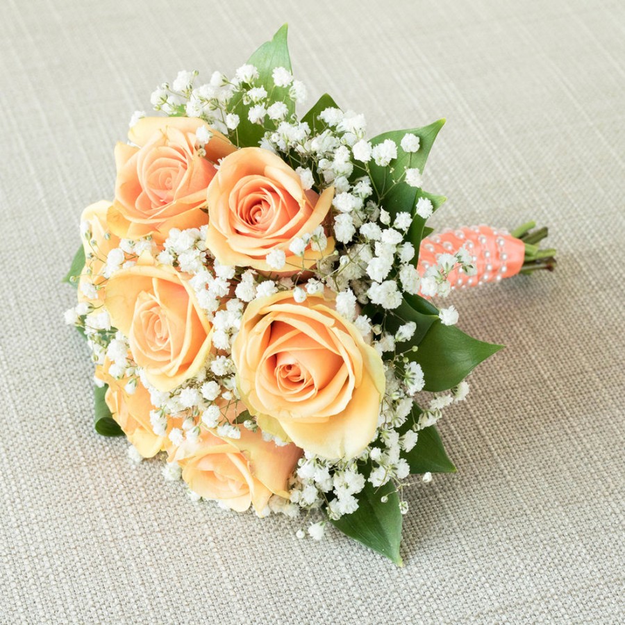 Illuminate your wedding party with our bright orange roses complemented by soft gypsophila, crafting a bridesmaid bouquet that's as stunning as it is elegant.