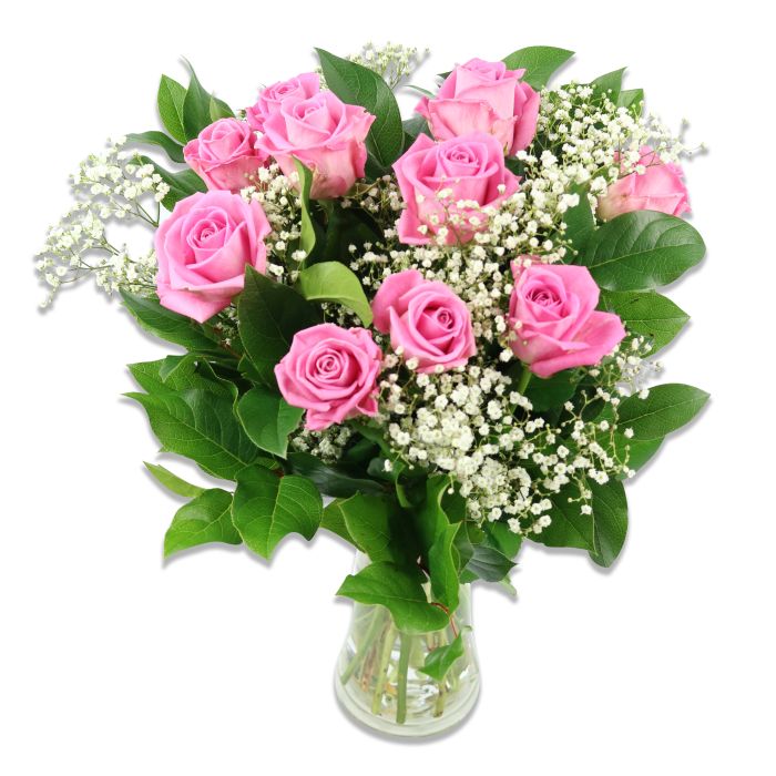 Express Your Gratitude with our stunning pink roses, symbolizing appreciation and love. This unique bouquet combines elegant pink roses with graceful gypsophila, creating a visually captivating arrangement perfect for celebrating special anniversaries.